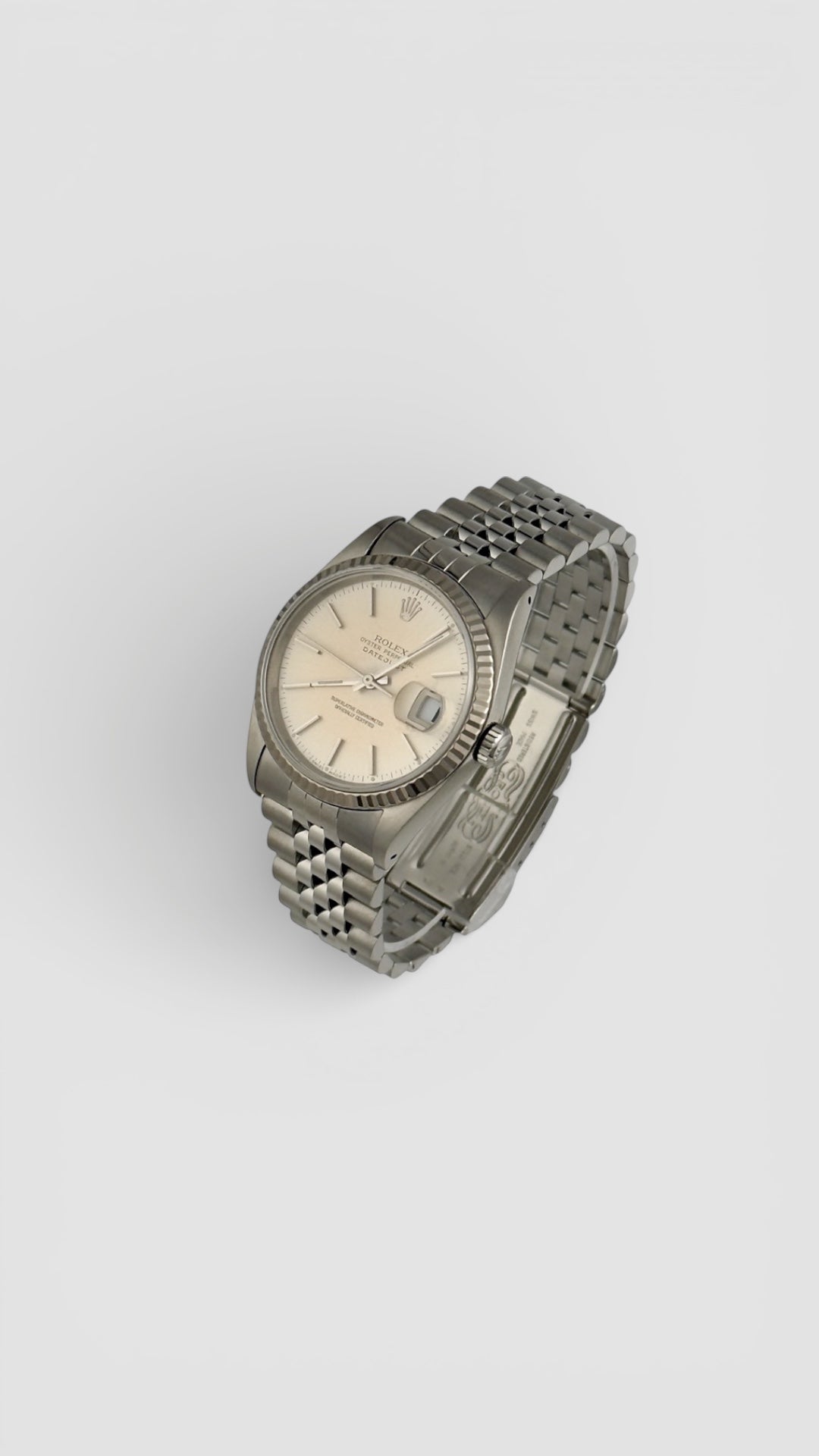 This 1991 Rolex Datejust 36mm is a true classic, featuring a reliable Swiss automatic movement, fluted bezel, and clean silver dial with stick indexes. Ideal for collectors, enthusiasts, or anyone seeking a luxury Swiss wristwatch with lasting style and investment potential.