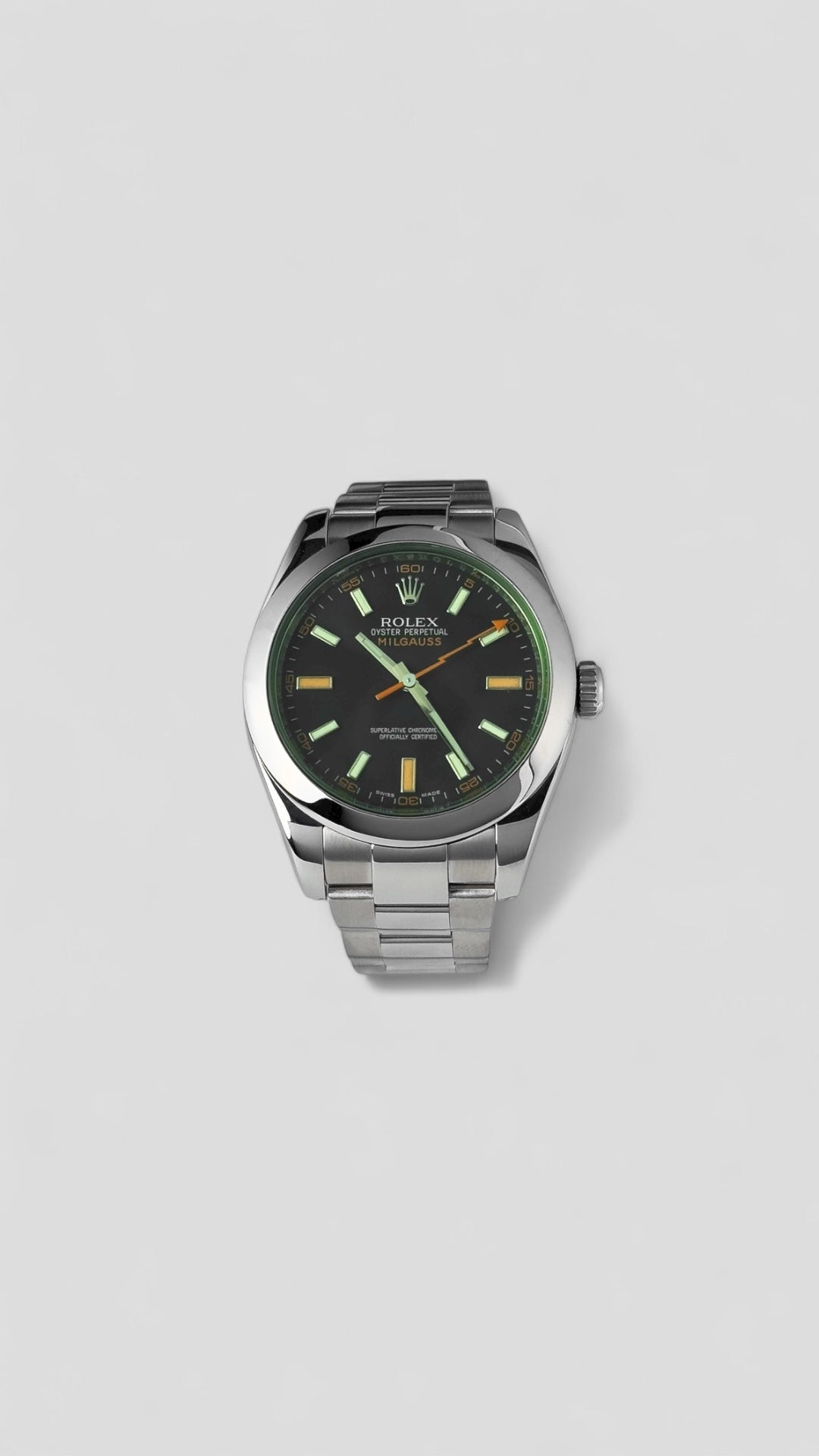 The Rolex Milgauss stands as a symbol of Swiss craftsmanship, anti-magnetic innovation, and understated luxury — an ideal choice for collectors and true connoisseurs of fine timepieces.