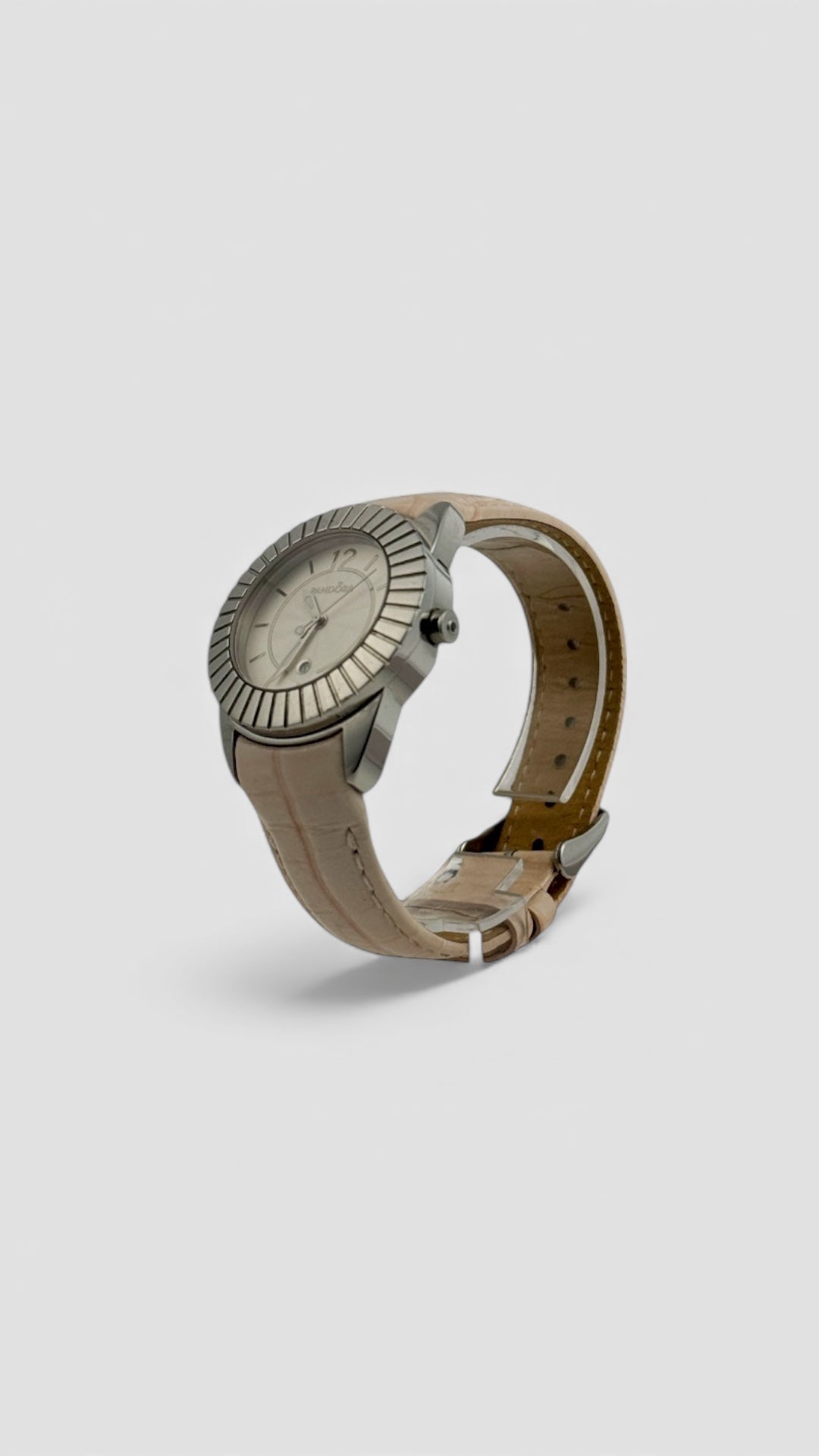 Add a touch of elegance and color to your wrist with the PANDORA Imagine watch. Featuring a pink leather strap, sterling silver bezel, and signature black diamond crown, this timepiece combines feminine style with Swiss precision.