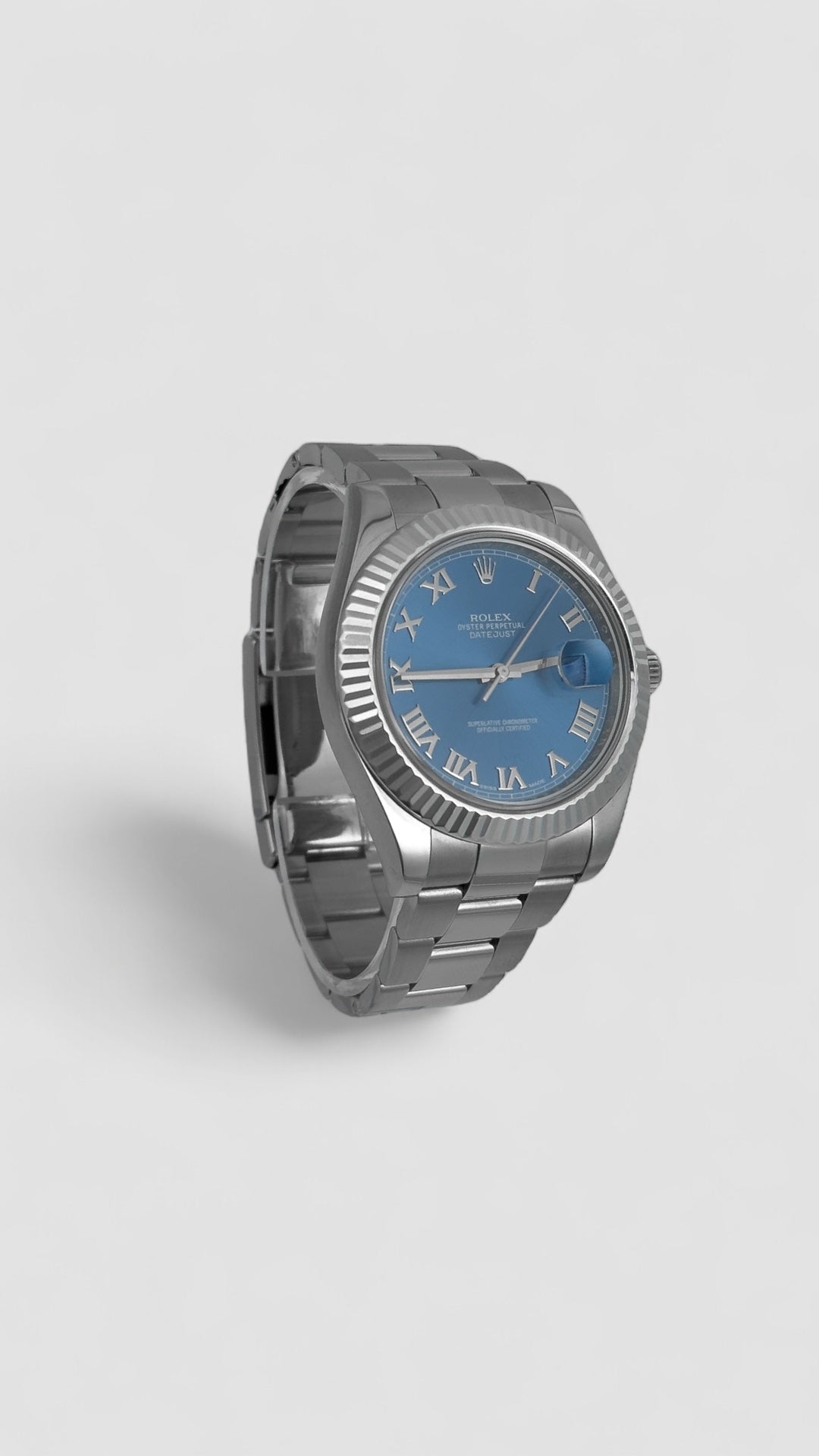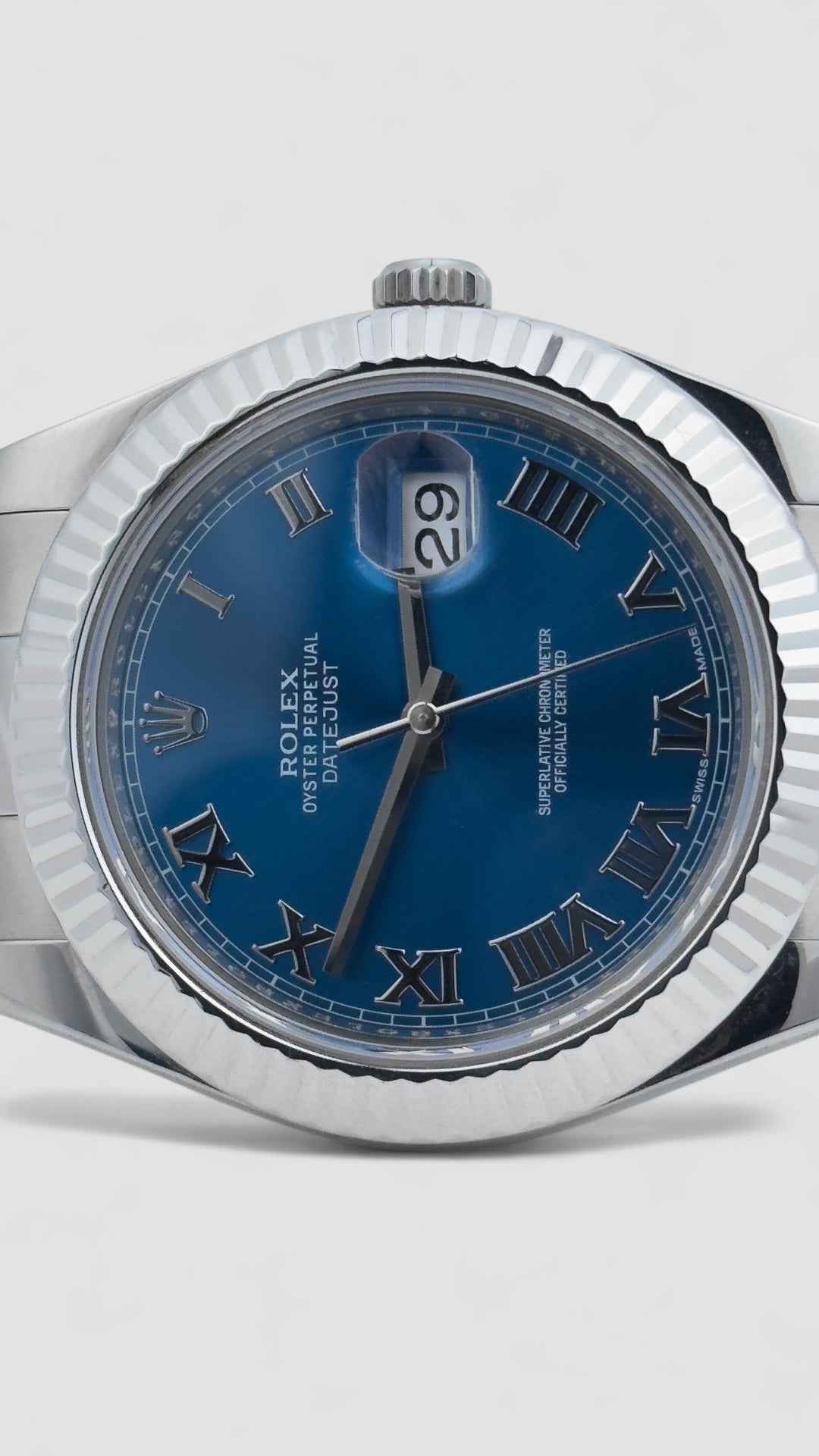 Rolex Datejust 41 Stainless Steel Blue Roman Dial Fluted Bezel Watch