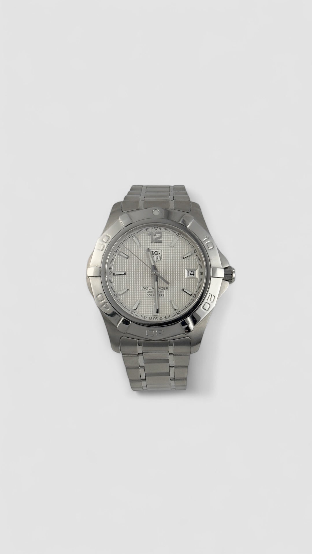 Keywords for SEO: TAG Heuer Aquaracer, men’s automatic watch, Swiss watch, stainless steel wristwatch, luxury casual watch, water-resistant watch, luminous hands watch, sapphire crystal watch, mechanical watch, date indicator watch